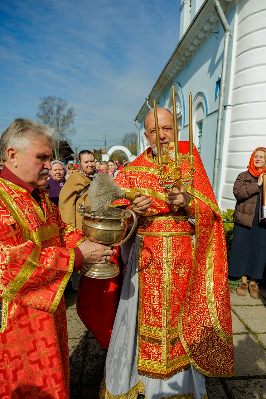Службу совершали настоятель храма протоиерей Алексий Никонов и настоятель Георгиевского храма деревни Аксиньино священник Владимир Груздев.